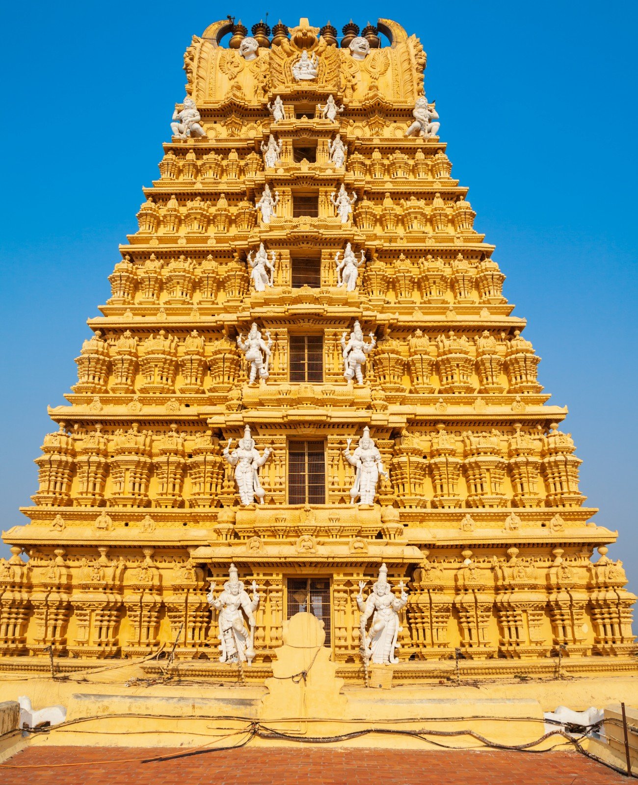 The famous Chamundeshwari Temple is located at the top of Chamundi hills, Karnataka, 13 kms from the Mysore Palace. It has been named after the Goddess Durga, a fierce form of Shakti or power.